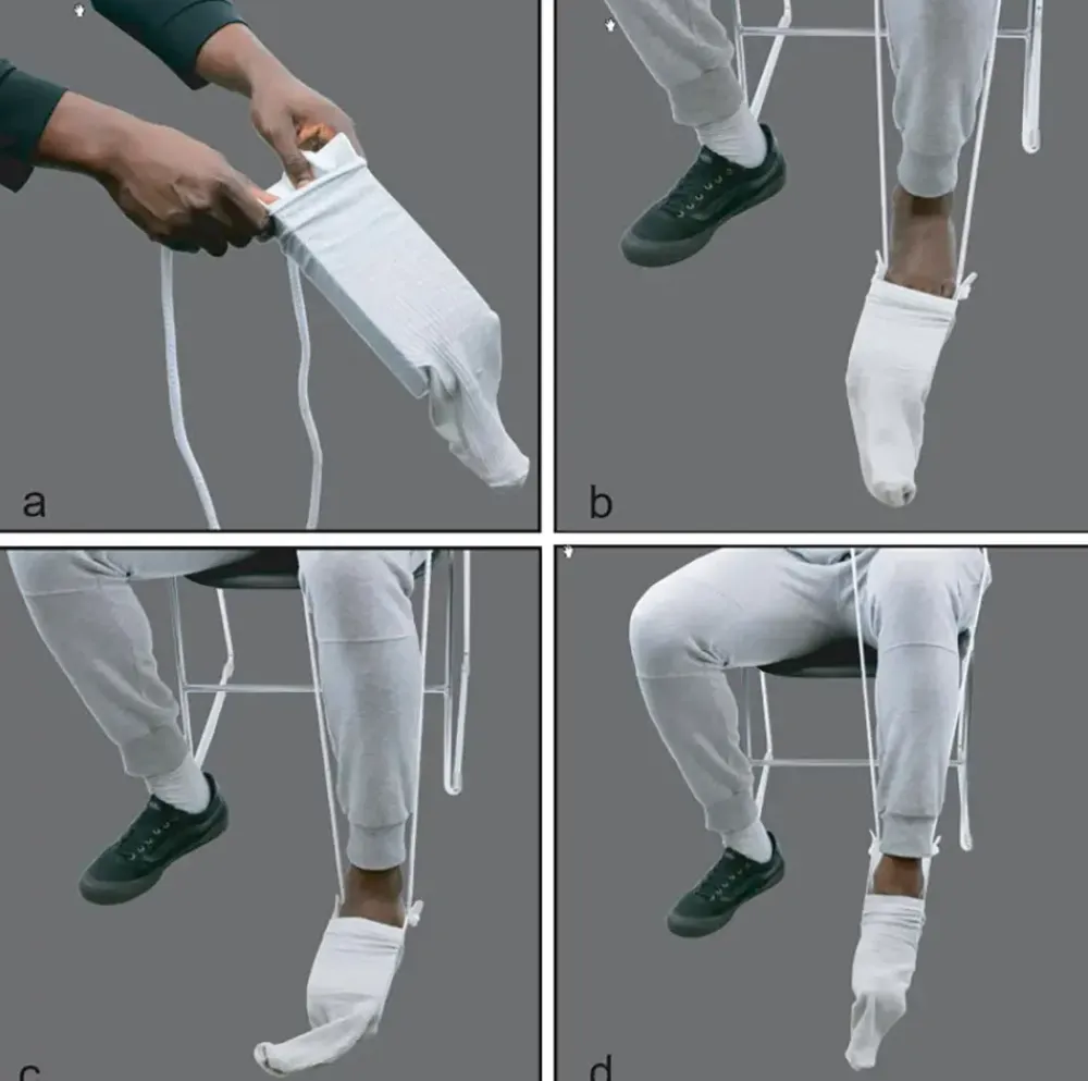 Strømpehjælpen er en smart og hurtig hjælp til at få strømper og sokker på, hvis man har nedsat mobilitet i bevægelsesapparatet.Man klemmer strømpehjælperen sammen, trækker strømpen ud over og fører foden ind i strømpen, hvorefter strømpehjælperen trækkes bagud og opad, så foden glider ned i strømpen.