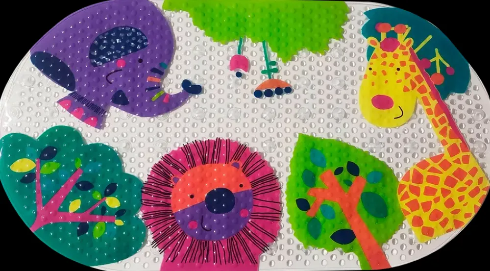 Denne bademåtte er ikke kun sikker og praktisk, den er også sjov og underholdende for børnene. Udover den skridsikre overflade og sugekopperne på bagsiden, har bademåtten også fine børnemotiver, der vil glæde og begejstre de små.Disse børnevenlige motiver tilføjer et strejf af leg og fantasi til badeoplevelsen og gør det mere spændende for børnene at træde ind i bruseren eller badekarret. De vil elske at identificere de forskellige motiver og lade deres fantasi løbe vildt under badetiden.Gennemsigtig med motiver
