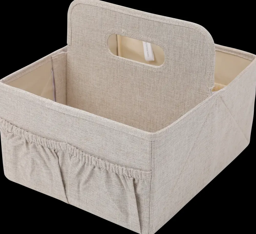 Foldbar opbevaringsløsning til puslebord, der giver overblik over babyens daglige fornødenheder. Opbevaringsboksen er opdelt i to rummelige hovedrum, som gør det nemt at adskille bleer, servietter, salver og andet pusleudstyr. Den indvendige inddeling bidrager til hurtig adgang, så det mest brugte ligger lige ved hånden. Mål og specifikationerH. 14 x B. 23 x L. 27 cmFarve: BeigeOpdeling: 2 hovedrumKonstruktion: FoldbarMærke: WeCare