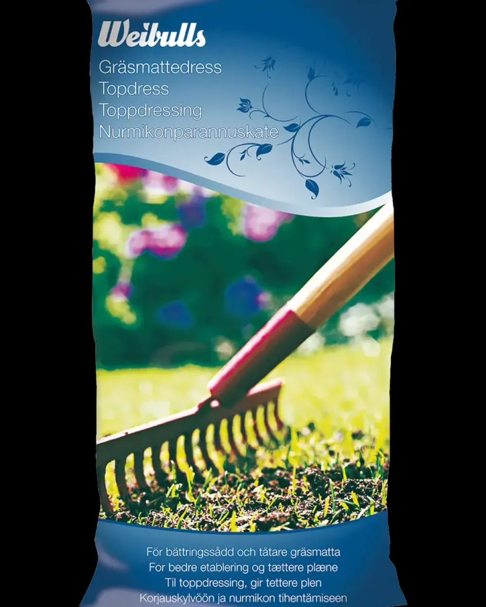 Løsner hårde plæner. Hjælper sandede jorde med at holde på fugten. Indeholder både sand og muld, som græsset har brug for til at blive tæt. Tilpas gødet, så den også kan bruges, når der eftersås på bare pletter.