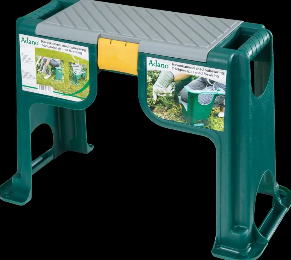 Gør havearbejdet mindre anstrengende med denne multifunktionelle haveskammel fra Adano. Kan bruges som både haveskammel og knæler. Desuden med praktisk rum til opbevaring af f.eks. havehandsker eller små haveredskaber.Maks. kapacitet som siddeplads: Ca. 120 kg.