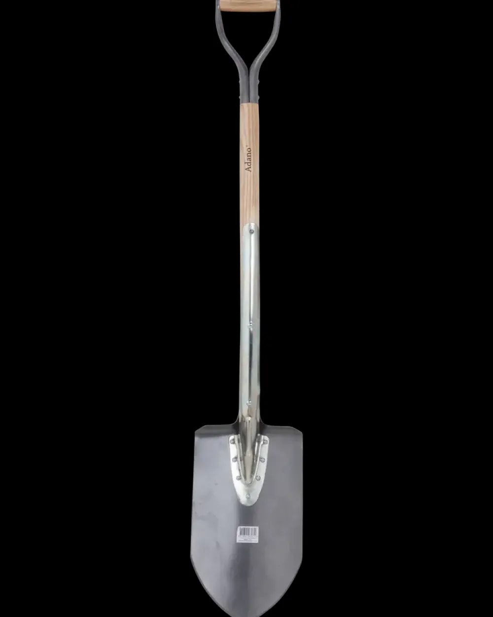 Entreprenør spidsspade fra Adano med træskaft med Y-håndtag og blad i stål.Den spidse havespade er lettere at bruge end en almindelig spade, når man graver i græstørv eller jord med mange rødder, da bladet løber ud i en spids.Bladtykkelse: 1,7 mm.