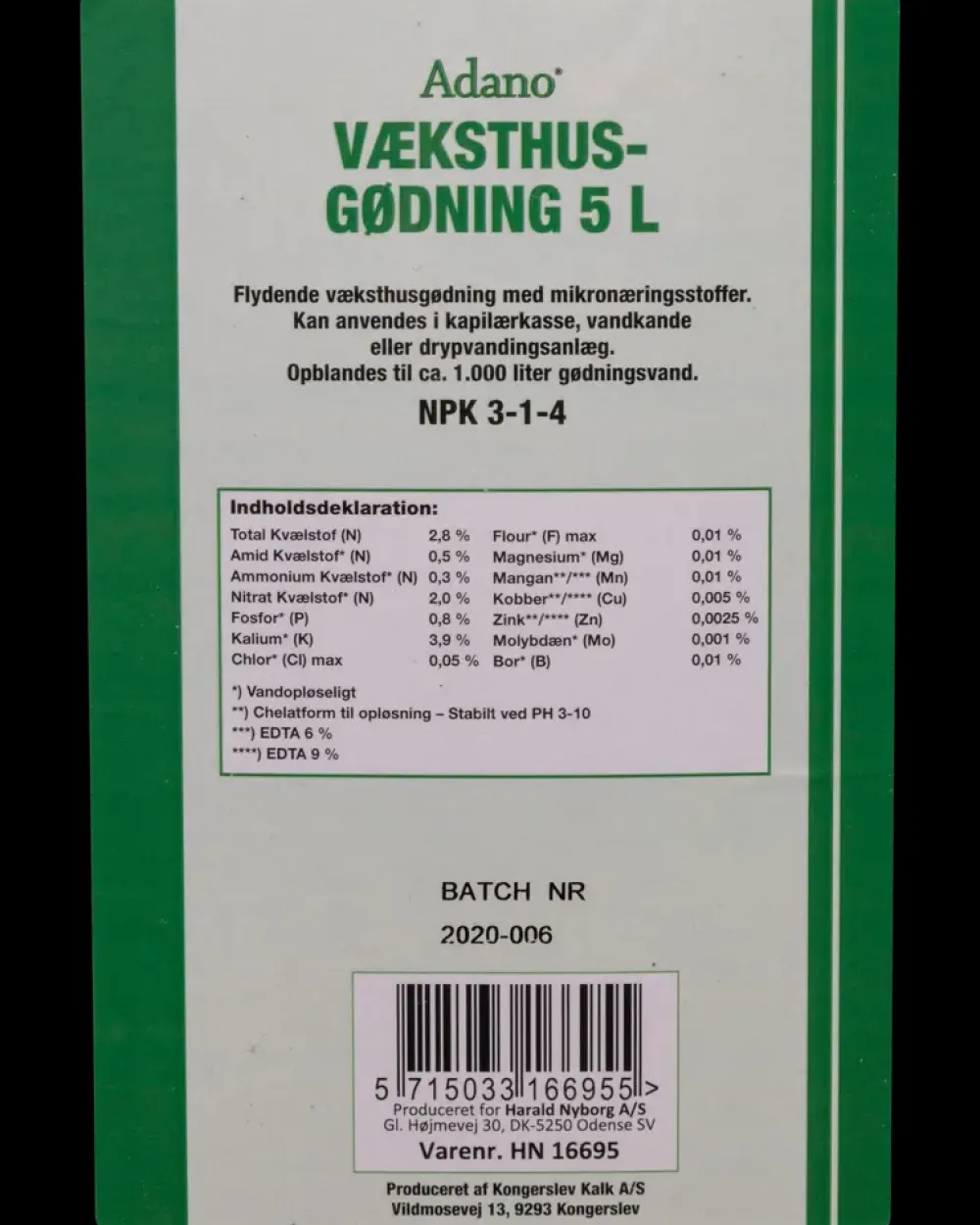 Adano Væksthusgødning 5 L| Gødning Og Jord