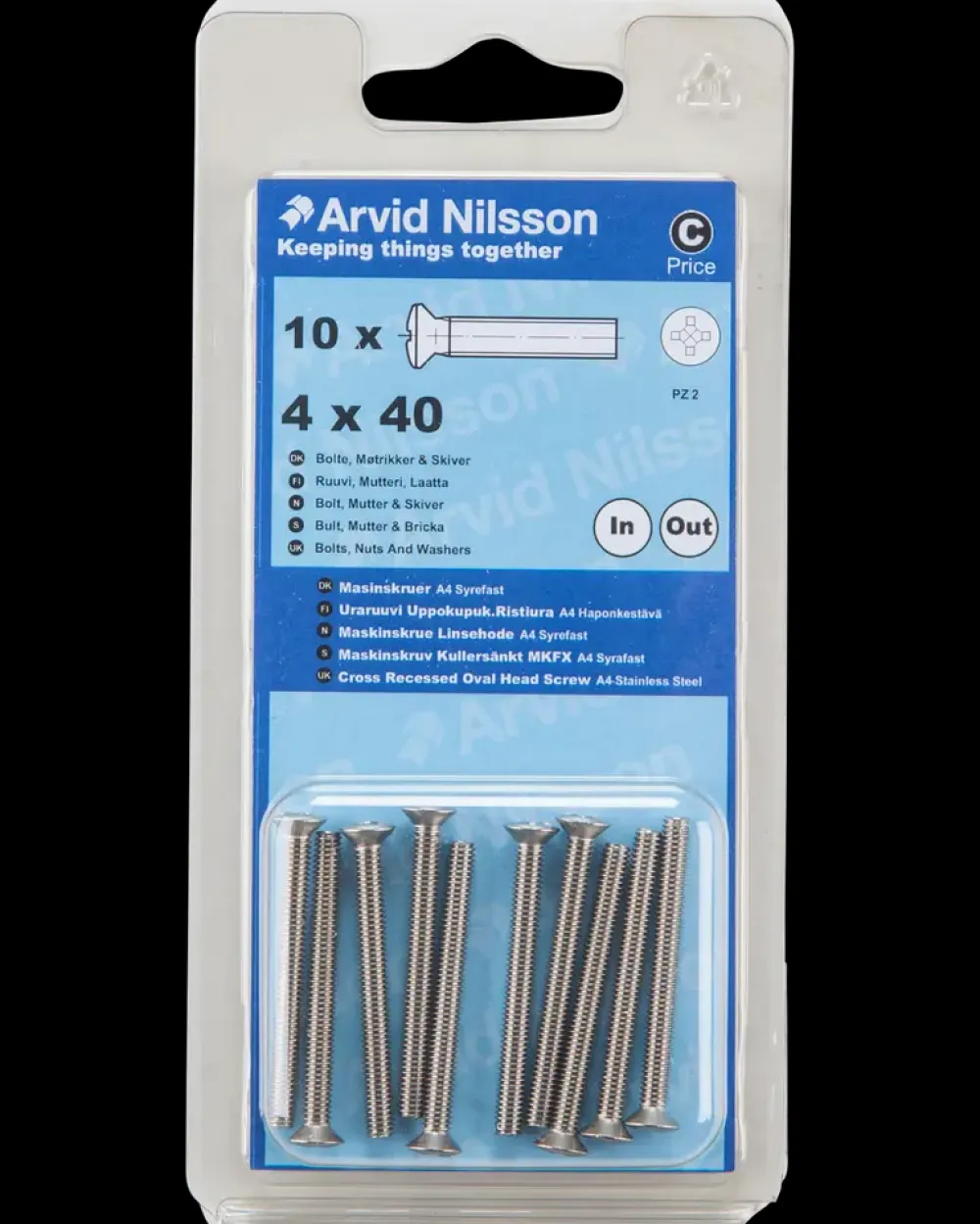 Arvid Nilsson Maskinskrue A4 LH M4 x 40 mm 10-pak| Maskinskruer, Bolte Og Møtrikker