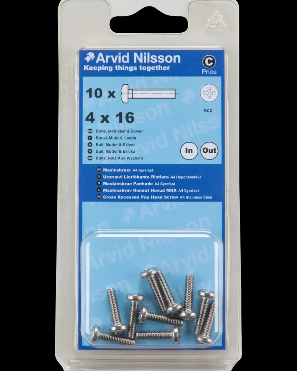 Arvid Nilsson Maskinskrue A4 PH M4 x 16 mm 10-pak| Maskinskruer, Bolte Og Møtrikker