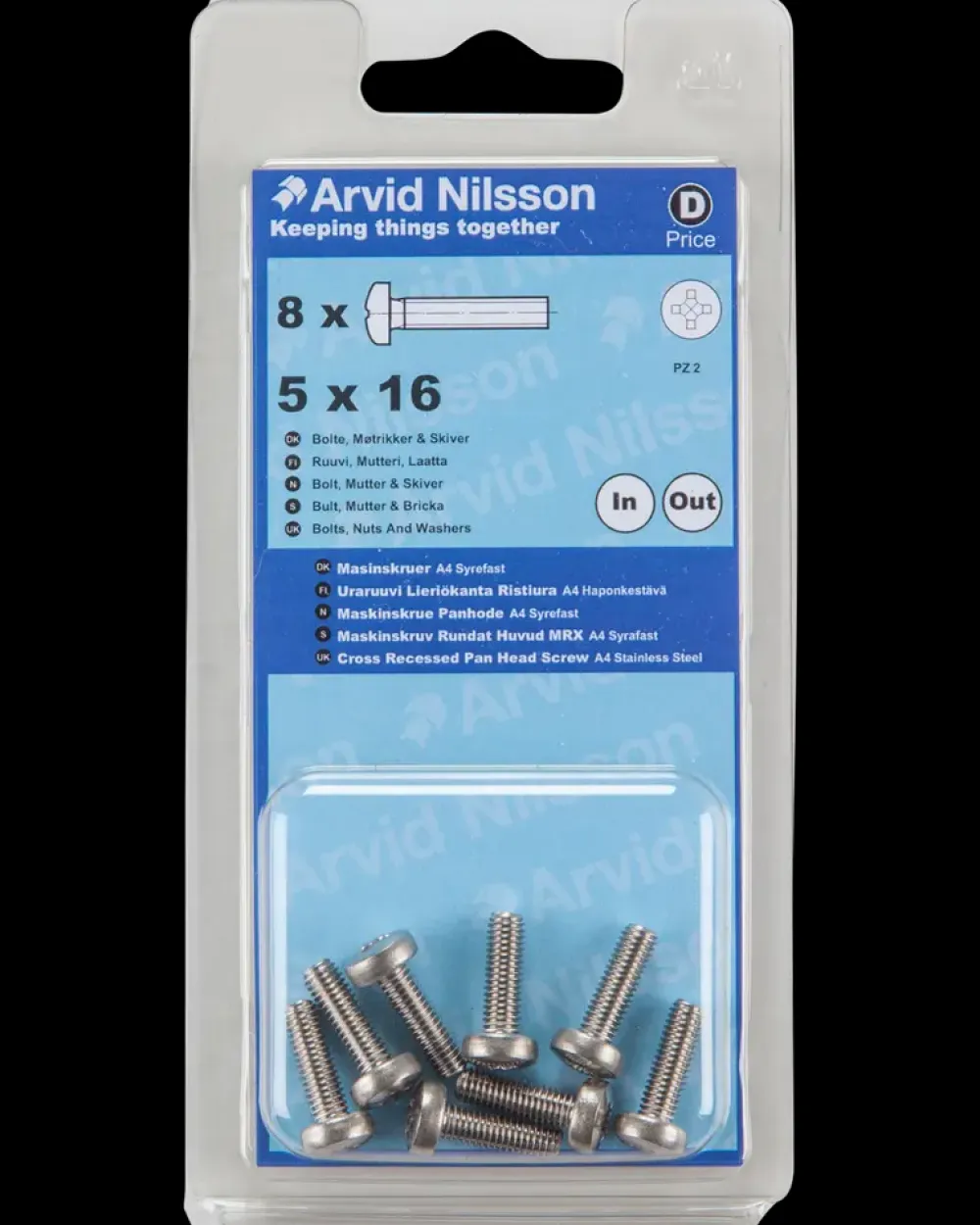 Arvid Nilsson Maskinskrue A4 PH M5 x 16 mm 8-pak| Maskinskruer, Bolte Og Møtrikker