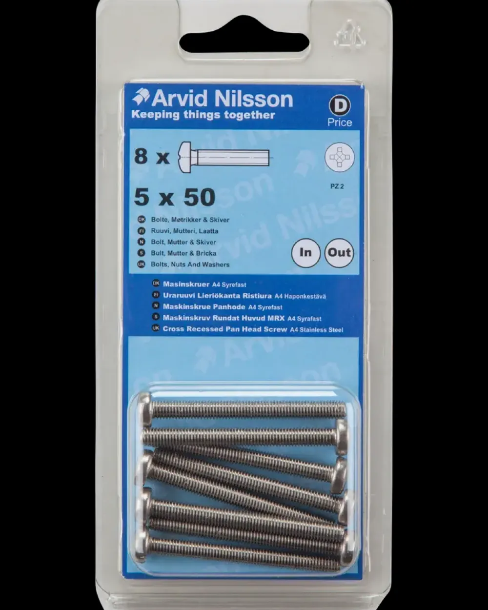 Arvid Nilsson Maskinskrue A4 PH M5 x 50 mm 8-pak| Maskinskruer, Bolte Og Møtrikker