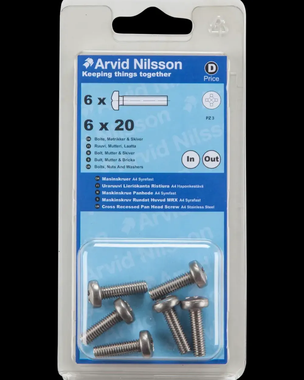 Vær den første til at anmelde “Arvid Nilsson Maskinskrue A4 PH M6 x 20 mm 6-pak| Maskinskruer, Bolte Og Møtrikker” Annuller svar