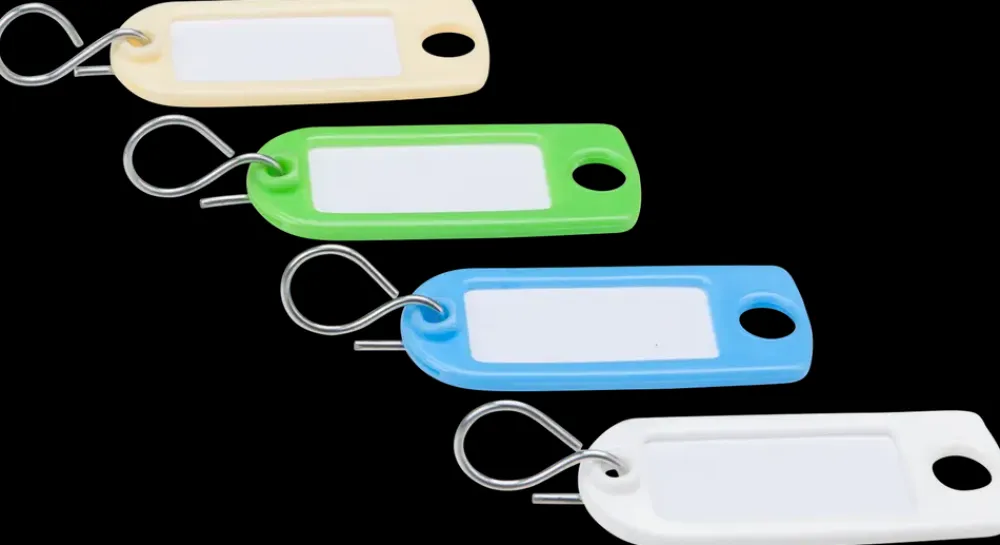 Plastik nøglemærker fra Arvid Nilsson i forskellige farver.
