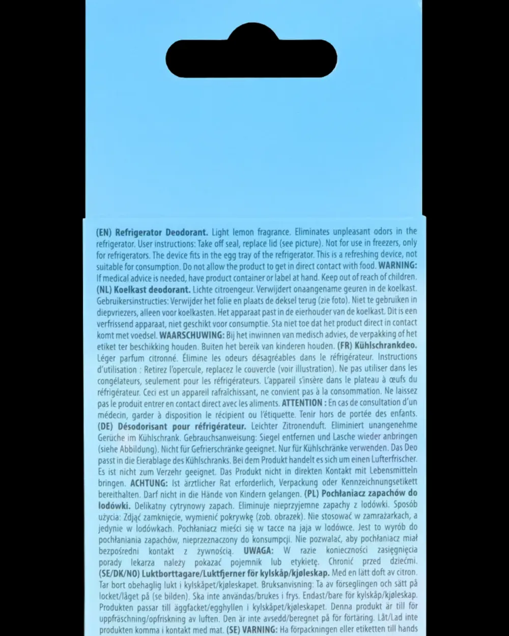 Denne duftfrisker fungerer som en deodorant til køleskabet og bekæmper lugtgener.Duftfriskeren er nem at bruge og kræver ingen yderligere indsats. Du skal blot placere den f.eks. i køleskabslågen, og den vil begynde at afgive sin friske duft af citron.Denne duft vil bidrage til at neutralisere ubehagelige lugte og holde dit køleskab lugtfritVariant: Sunkissed Lemon.