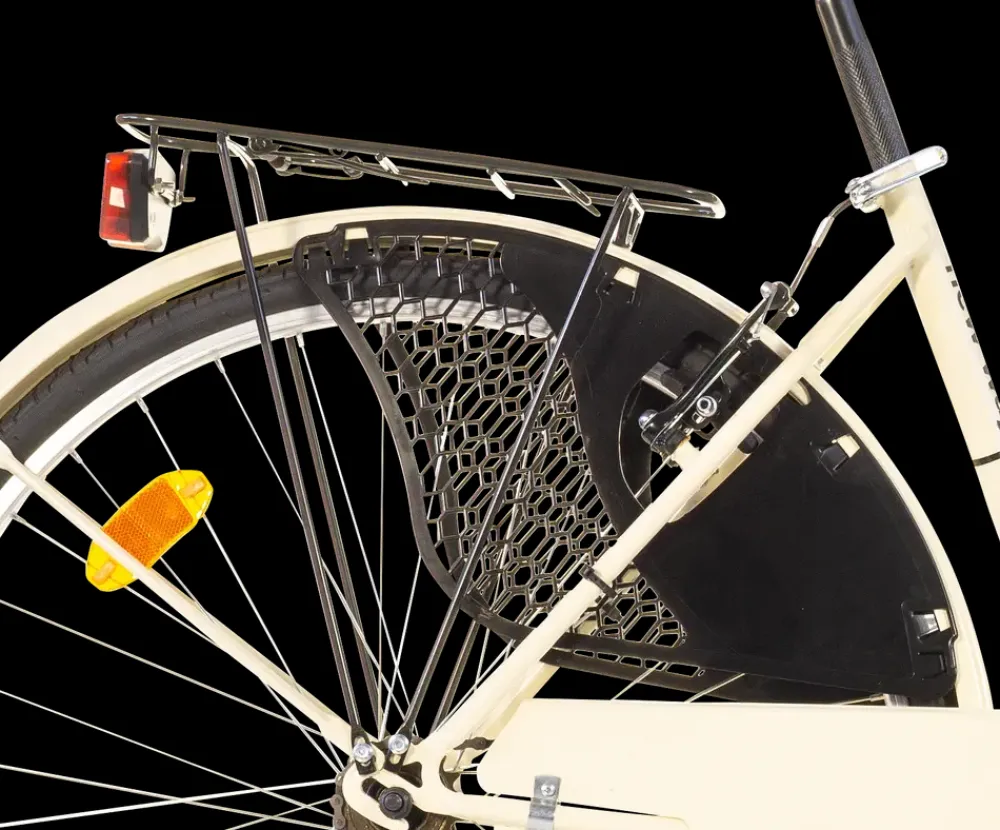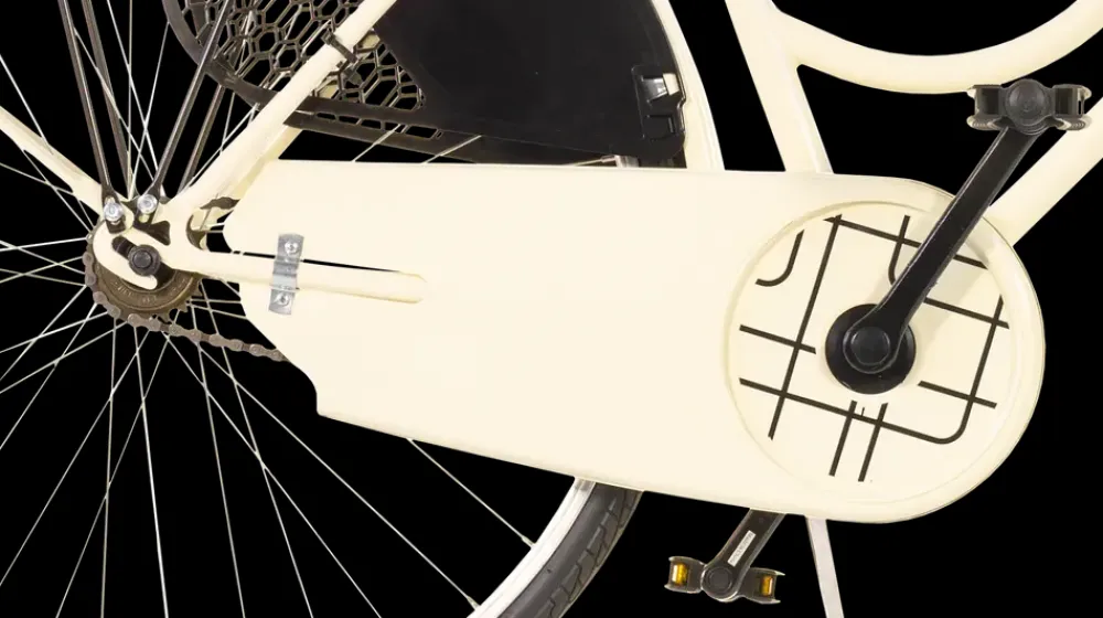 26″ Aurelia cykel velegnet til daglig transport og kortere fritidsture. Lav indstigningsramme i Hi-Ten stål for nem af- og påstigning. Udstyret med 1 fast gear og letløbende 26″x1 3/8″ aluminiumsfælge, som giver en stabil og enkel kørsel.V-bremser i aluminium for og bag, betjenes med håndgreb. Cyklen har ikke fodbremse. Kranksæt med 42 tænder og 170 mm pedalarme, monteret med Thun cartridge-bundbeslag. Sadel: DDK RVS Soft Customized – komfortabel til daglig brug.Inkl. støtteben, fastmonteret for- og baglygte, ringeklokke, hjulreflekser, heldækkende skærme, kædeskærm samt bagagebærere for og bag. Cremefarvet med sorte detaljer.Leveres delvist samlet. Cykellås medfølger ikke.
