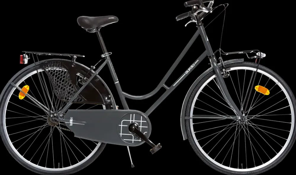 Aurelia Olanda 26″ er en cykel til hverdagsbrug, hvor en opret kørestilling og enkel konstruktion giver en rolig køreoplevelse. Den lave indstigning gør det nemt at komme af og på, hvilket er en fordel ved stop i bytrafik og korte ture.Cyklen har bagagebærer både foran og bagpå, som giver mulighed for at transportere taske eller mindre oppakning. Kædeskærmen beskytter tøjet mod kontakt med kæden, og skærme ved begge hjul reducerer stænk fra vejen. For- og baglygter samt reflekser øger synligheden, og støtteben og ringeklokke er integreret i udstyret.Stellet er fremstillet af stål og har en stelhøjde på 46 cm.Single-speed med 1 gear.Hjulstørrelse 26″.Vægt 15 kg.Farve grå.Leveres delvist samlet.