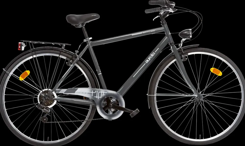 Aurelia 28″ trekkingcykel til herrer er velegnet til daglig transport, fritidskørsel og lettere ture på asfalt og fast grus. Cyklen har en klassisk opbygning med stålstel og 28″ hjul, som giver en stabil og forudsigelig køreoplevelse. Med 6 gear er det muligt at tilpasse kørslen til både flade strækninger og mindre stigninger.Cyklen er udstyret med V-bremser, der giver kontrolleret opbremsning ved almindelig brug. Gearskiftet betjenes via grip shift, som gør det nemt at skifte gear under kørsel. Stellet har en stelhøjde på 50 cm og er udført i grå finish.Udstyret omfatter forlygte, reflekser, ringeklokke, støtteben og skærme, hvilket gør cyklen egnet til brug i hverdagen. Derudover medfølger bagagebærer og kædeskærm. Cyklen leveres delvist samlet.Tekniske detaljer:Stelhøjde: 50 cmHjulstørrelse: 28″Materiale: StålFarve: GråAntal gear: 6Bremser: V-bremseVægt: 17 kg