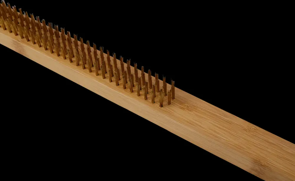 Stålbørste med integreret skraber i rustfrit stål i enden.Et essentielt redskab til optimal afrensning af pizzasten.Børsten har et hul i enden af håndtaget, så den er nem at hænge op, når den ikke er i brug.Stålbørsten kan også anvendes som tilbehør til grilning mv.Greb: Bambus.Børster: Kobber