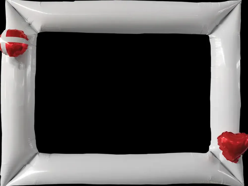 Denne folieballon er udformet som en fotoramme og er oplagt til festlige begivenheder, hvor gæsterne kan tage sjove billeder. Den kan holdes op foran kroppen eller hænges op som dekoration.Ballonrammen leveres med to mini balloner, som kan påsættes efter ønske. Den ene er en rød hjerteformet ballon, og den anden er rund med Dannebrogsmotiv – begge med selvluk, så de er nemme at oppuste og lukke uden brug af knuder. Et pusterør medfølger for nem oppustning.Folieballonen måler 65 x 84 cm, når den er oppustet, og fremstår i hvid med en glat overflade. Den store rammeeffekt giver god synlighed og skaber en sjov fotomulighed for deltagerne.