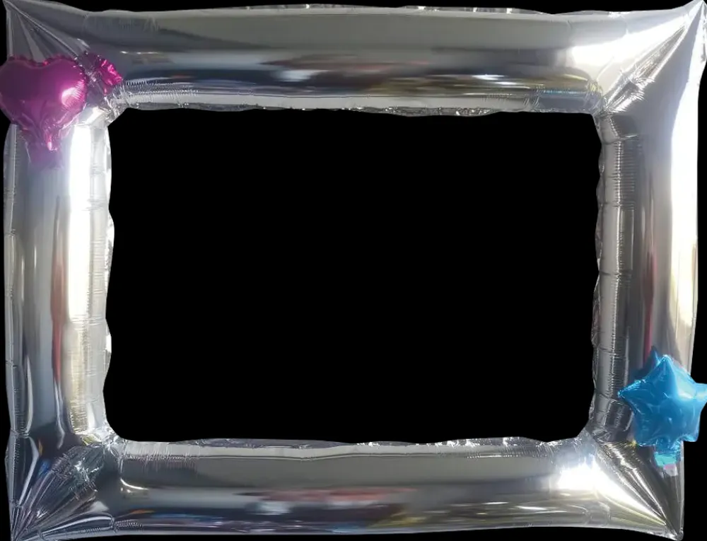 Denne folieballon er udformet som en fotoramme og er oplagt til festlige begivenheder, hvor gæsterne kan tage sjove billeder. Den kan holdes op foran kroppen eller hænges op som dekoration.Ballonrammen leveres med to mini balloner, som kan påsættes efter ønske. Den ene er en lilla hjerteformet ballon, og den anden er en blå stjerne – begge med selvluk, så de er nemme at oppuste og lukke uden brug af knuder. Et pusterør medfølger for nem oppustning.Folieballonen måler 65 x 84 cm, når den er oppustet, og fremstår i hvid med en glat overflade. Den store rammeeffekt giver god synlighed og skaber en sjov fotomulighed for deltagerne.