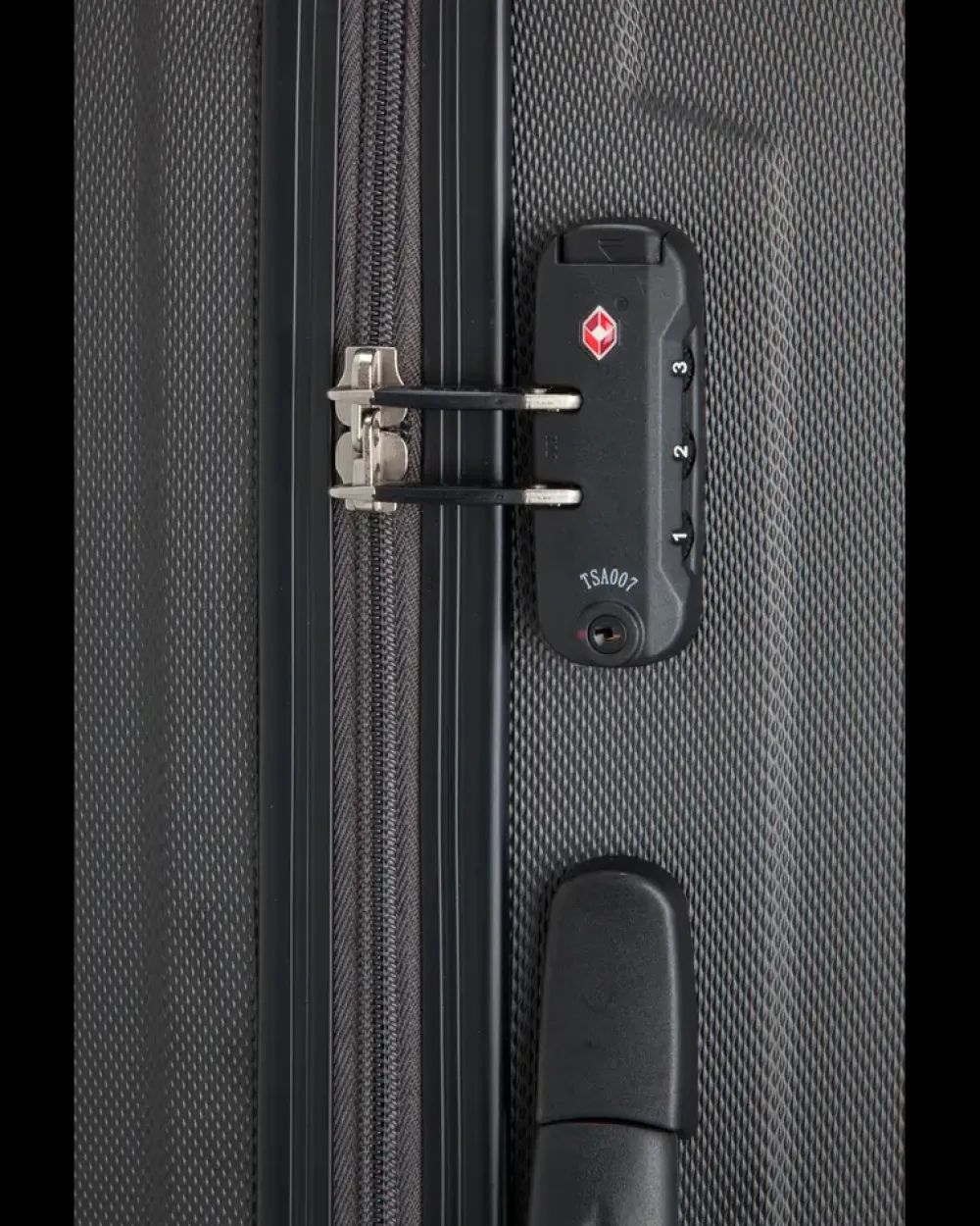 Lækre kufferter i ABS-plastik med udtrækshåndtag og TSA lås. Begge har 4 hjul der er 360° roterbare.Lille kuffert:Indhold: 32 literUdvendige mål: H. 55 x B. 34 x D. 21 cm.Vægt: 2,5 kg.Maks. vægt: 15 kg.Stor kuffert:Indhold: 101 literUdvendige mål: H. 78 x B. 52 x D. 28,5 cm.Vægt: 4,1 kgMaks. vægt: 20 kg.