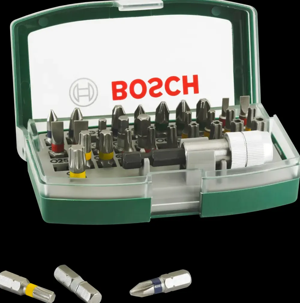 Find hurtigt den rigtige skruebit med de farvemærkede Bosch skruebits. 31 skruebits i 25 mm længde til alle gængse skruetyper og -størrelser.Indhold: 31 skruetrækkerbits med farvekodning, L. 25 mm – PH 1/2/2/3PZ 1/2/2/3S 3/4/5/6HEX 3/4/5/6T 10/15/20/20/25/27/30/40Th 10/15/20/25/27/30/401.Quick-Change-universalholder, magnetisk
