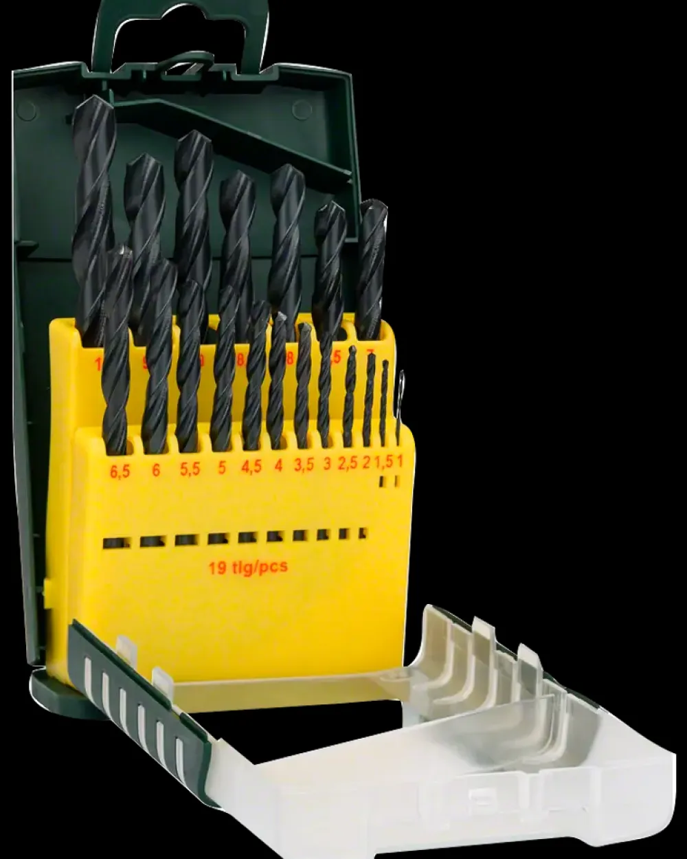 Metalborsæt til præcis boring i jern, stål, ikke-jernholdige metaller, gråt støbejern og hårde kunststoffer. Bordiameter stigende i 0,5-mm-trin på 1-10 mm.Indhold: 19 HSS-R metalbor, Ø1/1,5/2/2,5/3/3,5/4/4,5/5/5,5/6/6,5/7/7,5/8/8,5/9/9,5/10 mm.