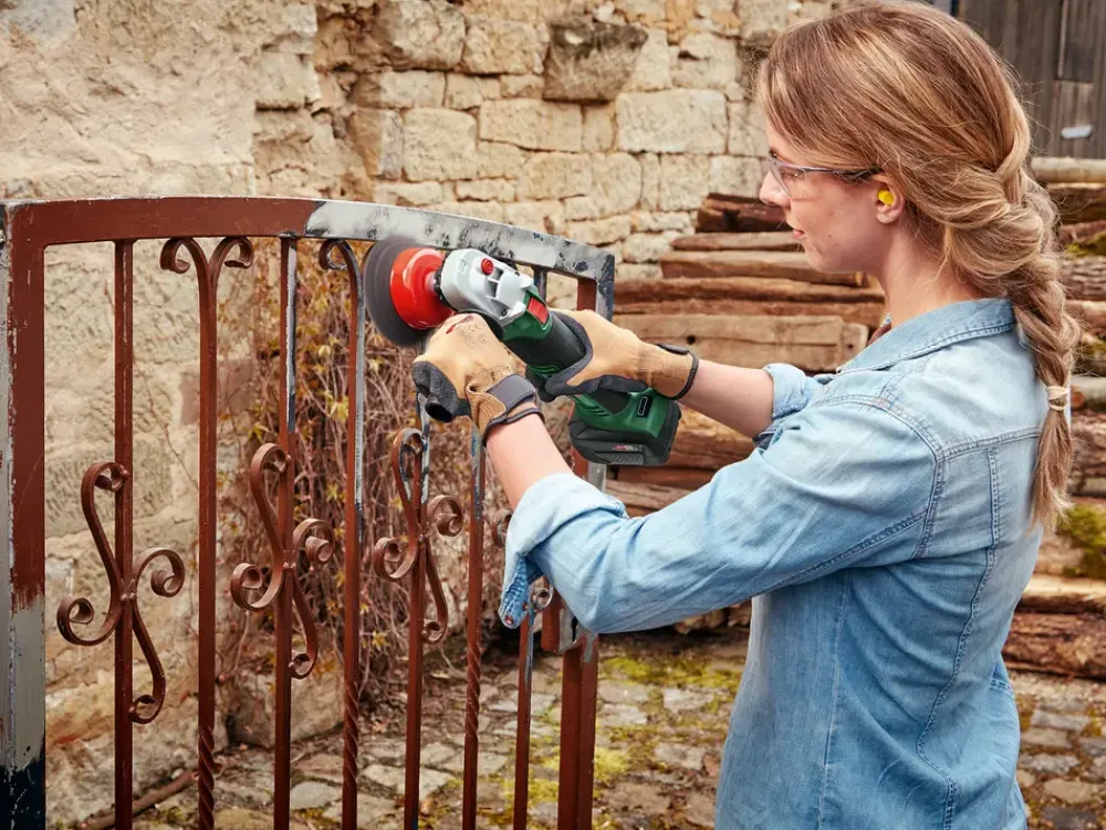 Praktisk batteridrevet vinkelsliber til mange forskellige gør-det-selv-opgaver. Den batteridrevne vinkelsliber UniversalGrind 18V-75 er praktisk og let at betjene og ideel til gør-det-selv-opgaver med skæring og slibning. Nyd det slanke greb og funktioner som indstilling af afskærmning uden brug af værktøj eller genstartsbeskyttelsen. Dette værktøj er velegnet til slibning, skæring og børstning af metal, sten, beton og fliser. Værktøjet er en del af POWER FOR ALL ALLIANCE. Ét batteri kan bruges til en lang række værktøjer fra forskellige producenter. Batteri og lader kan tilkøbes. Vægt: 1,7 uden batteri.