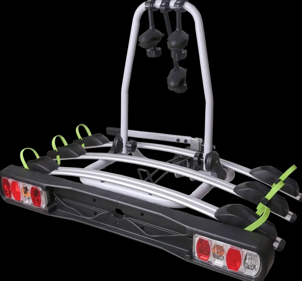 Cykelplatform til anhængerkrog.Plads til 3 cykler (maks.: 45 kg.).Vippefunktion for nem adgang til bagagerum.13 pol. anhængerstik.E-mærkede lygter.Sikker og pålidelig cykelholder til transport af 3 cykler.Passer til næsten alle anhængerkugler og alle cykler og hjulstørrelser Bagagerummet forbliver altid tilgængelig med vippefunktionen.Cyklerne holdes stabilt og der er justerbare hjul holdere.13 polet stik. tågelygte og baklys. Indstillelige cykel holder armeLastevne 45 kg. plus egen vægt 18,5 kg = 63,5 kg.