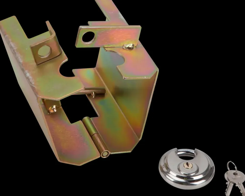 Trailerlås inklusiv hængelås.Boksmodel.Passer til de fleste træk.