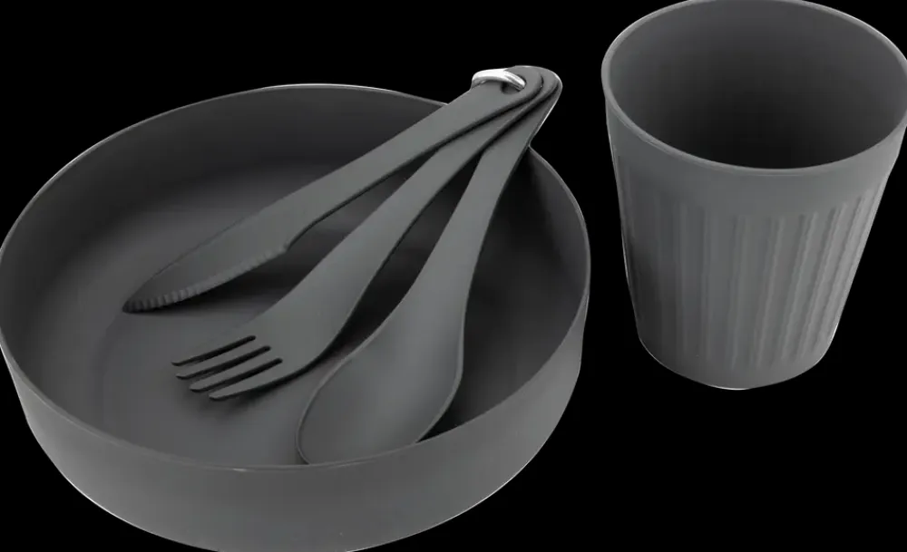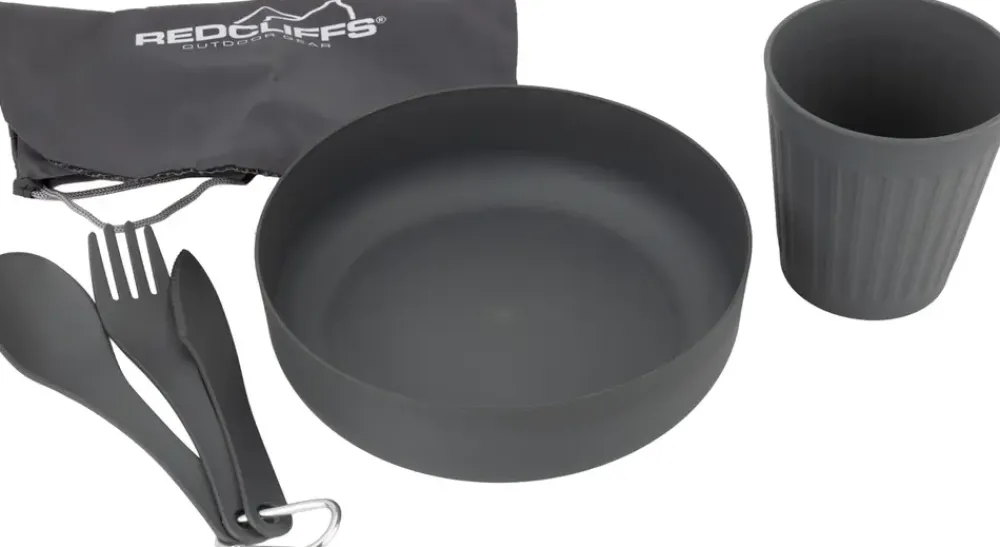 Praktisk camping spisesæt med 6 dele, der gør det nemt at spise på farten. Sættet inkluderer en skål, et krus, en kniv, en gaffel og en ske, som er samlet på en hægte, så de holdes sammen. Leveres med en opbevaringspose, der gør det nemt at transportere og opbevare sættet. Ideelt til camping, vandreture og udendørs eventyr.Specifikationer: Skål: 730 ml.Krus: 330 ml.