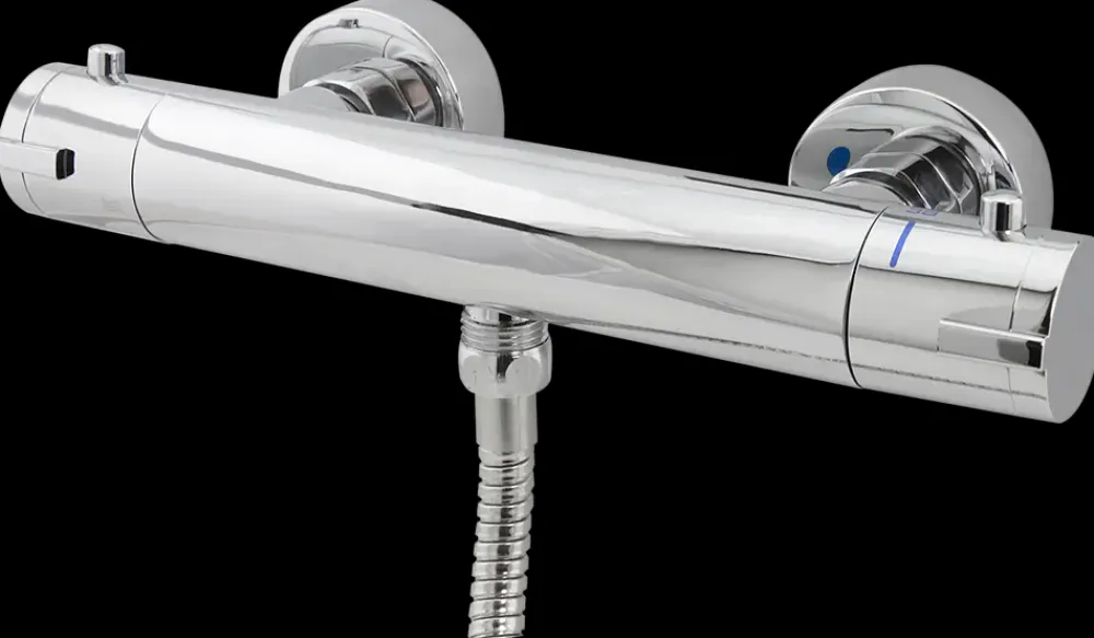 Flot termostatbatteri fra Carlsbad med vandsparefunktion.Materiale: Rustfrit blankpoleret stål.5 års garanti.