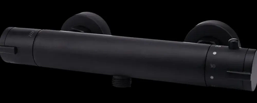 Termostatbatteri i sort stilrent design med skoldningsstop.1 udtag.Skoldningsstop.Keramisk indsats.2 stk. forskruninger og dækkapper (inkl.).