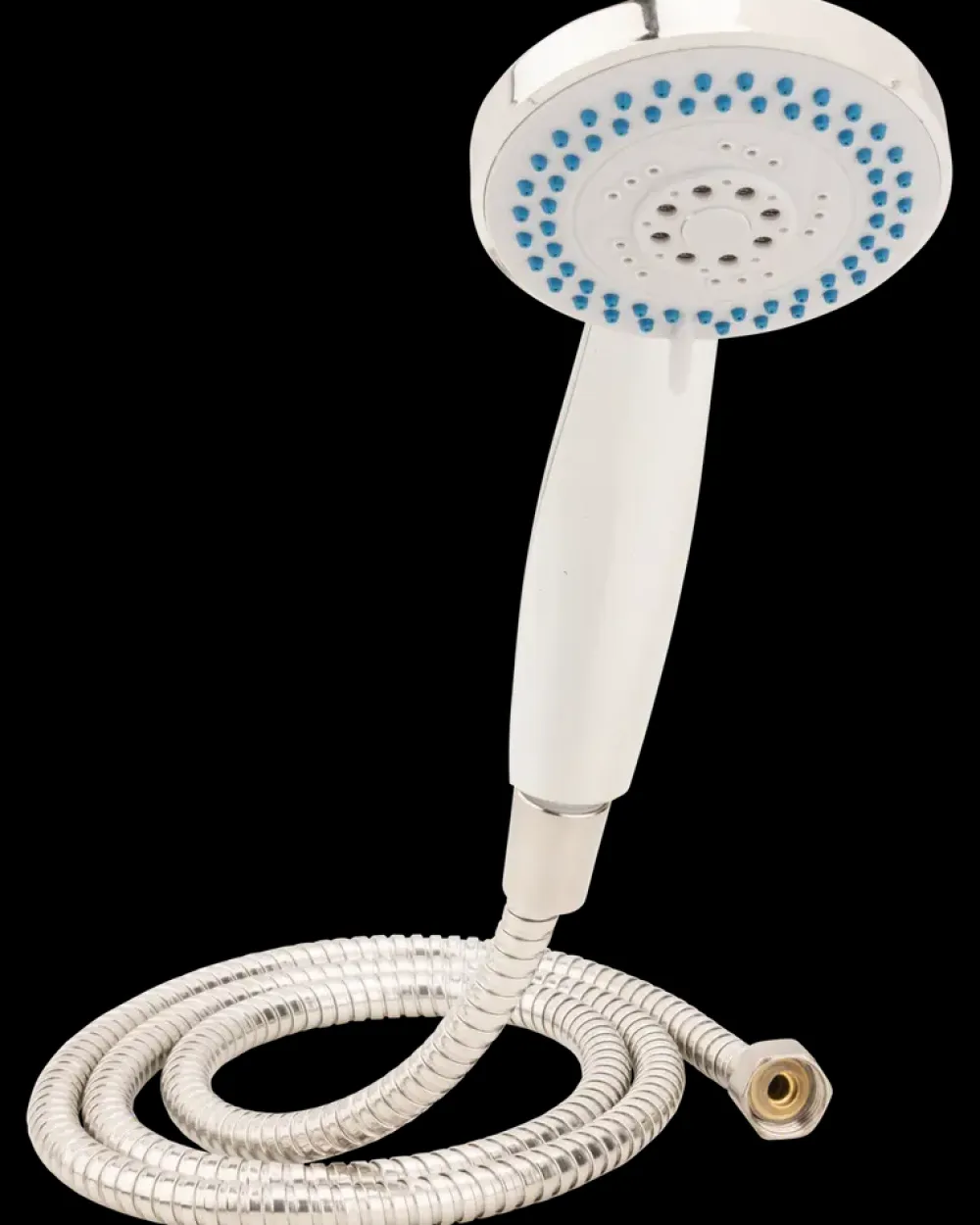 Brusesæt med brusehoved og slange i funktionelt design. Brusehovedet har 5 stråletyper – bl.a. regn, massage og tåge – som let vælges via det ergonomiske greb. Diameter: 7,5 cm.Slangen måler 150 cm og giver god bevægelsesfrihed. Sættet er fremstillet i ABS-plast og rustfrit stål, hvilket sikrer høj holdbarhed og modstandsdygtighed mod korrosion.Den vandeffektive udformning bidrager til reduceret vandforbrug uden at mindske trykket.