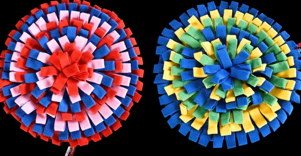 Sjov og udfordrende hundelegetøj, der aktiverer din hund på en ny og spændende måde.Gem godbidderne i tæppet og lad hunden snuse sig frem til dem.Aktivitetsmåtten med de forskellige farver vil være et indbydende tidsfordriv til dit kæledyr, der vil blive udfordret til at finde sin godbid gemt i mellem frynserne og samtidigt træne sin lugtesans.Aktivitetsmåtten er velegnet til hunde af enhver størrelse og alder.Kan maskinvaskes ved 30 grader.Bemærk, at der ikke kan vælges farve ved køb i Webshoppen