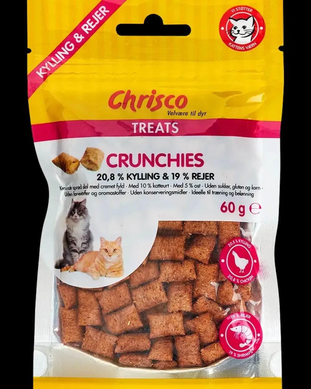 Chrisco Crunchies Kylling & Rejer 60 g| Hundefoder, Kattemad Og Godbidder