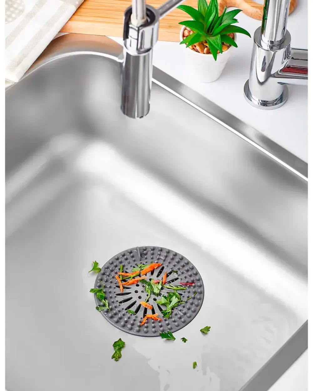 Et enkelt og effektivt design, der kan bruges som hårfanger i afløbet. Rengør kun vaskesien med varmt sæbevand.Farve kan ikke vælges i webshoppen.