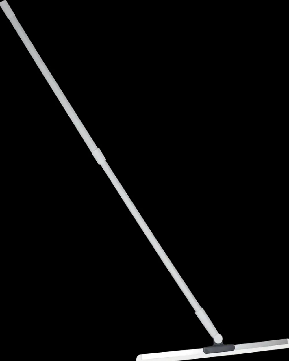 Denne holdbare og fleksible svaber i silikone er den perfekte løsning til effektiv rengøring af forskellige overflader. Med en bredde på 45 cm kan den dække et stort område på én gang.Svaberen er designet med en silikonekant, der lukker tæt til den overflade, der skal rengøres.En unik funktion ved denne svaber er, at skaftet kan flyttes fra den ene side af svaberen til den anden. Dette gør det nemt at komme ind under møbler eller andre forhindringer, hvor det normalt kan være svært at nå.Teleskopskaftet er i metal og kan blive op til 120 cm langt.