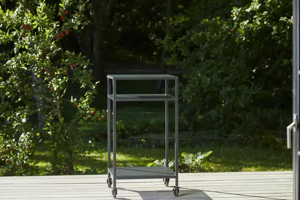 Dette høje udebord fra Cozze® er en praktisk løsning til dit udendørskøkken og velegnet som base for en pizzaovn eller som arbejdsstation. Den zinkbehandlede og pulverlakerede stålramme sikrer stabilitet og holdbarhed, mens det åbne design giver nem adgang til udstyr og redskaber.Bordet er udstyret med tre opbevaringshylder og fire letkørende Ø75 mm hjul – heraf to med bremse for øget stabilitet. Arbejdshøjden på 110 cm giver en komfortabel arbejdsstilling, uanset om bordet bruges privat eller professionelt.Specifikationer:Materiale: Zinkbehandlet og pulverlakeret stålFarve: SortMål: L635 x D600 x H1100 mmTopplade: L600 x D600 mmMaks. belastning: 50 kgHjul: 4 letkørende Ø75 mm hjul, 2 med bremseInkluderer: 4 kroge