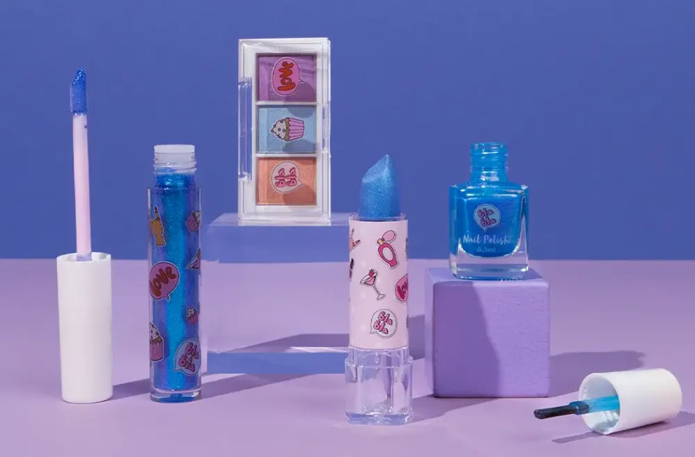 Komplet makeup-sæt med fire koordinerede produkter i blå og metalliske nuancer. Sættet inkluderer neglelak, læbestift, lipgloss og en øjenskyggepalette med tre farver. Hver del er valgt for at skabe et samlet look med holografiske og skinnende effekter.Farvepaletten består af kolde toner med glans, som passer til både fest og hverdag. Produkterne er nemme at anvende og leveres i kompakte formater, som er praktiske at tage med på farten. Emballagen har et dekorativt og farverigt udtryk.Kosmetik fra Create It! er testet og deklareret i overensstemmelse med EU’s kosmetikregulativer. Alle produkter er uden parabener, glutenfri og 99 % veganske. Der er ikke anvendt dyreforsøg.