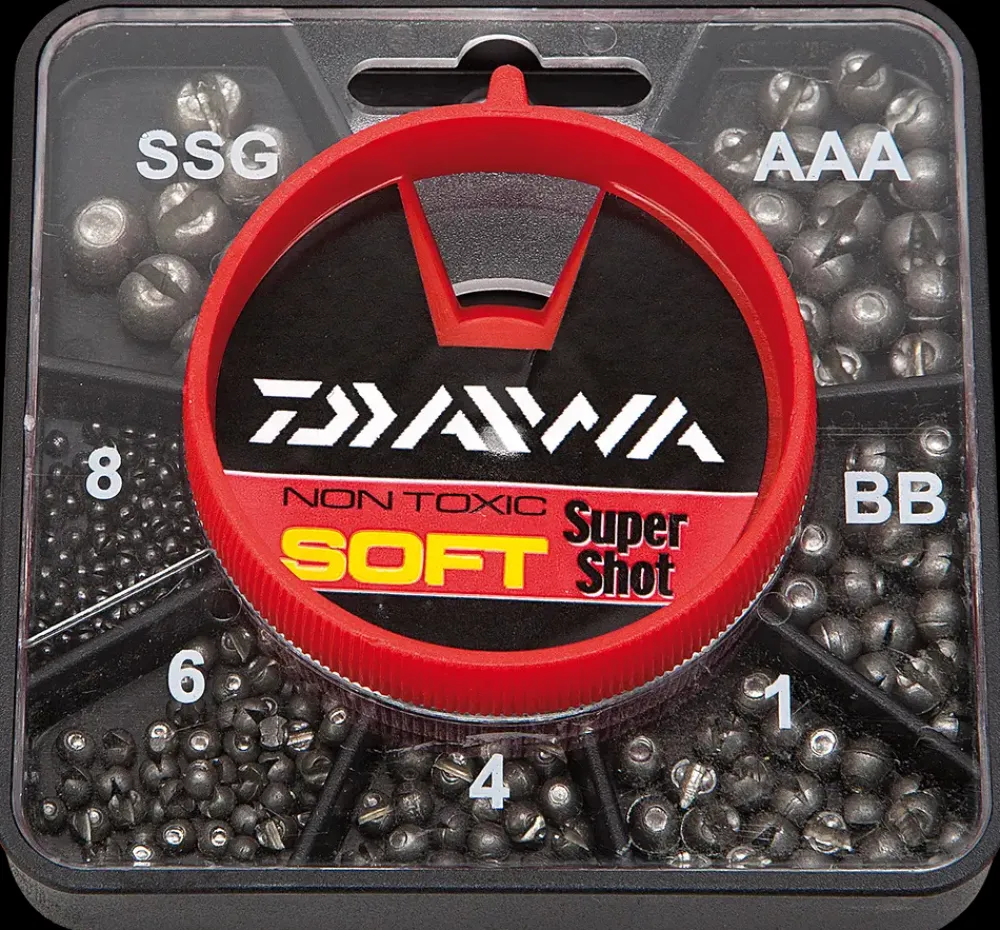 Daiwa super soft splithagl i høj kvalitet og er et miljø produkt.Kommer i en æske med 7 størrelser, de er bløde så de er nemme at montere og skåner linen.7 rum i en firkantet kasse.Kan lukkes med let fingertryk er lettere for åbning igen.Bruges til forskellige rig i å, put and take, sø, kyst og hav.Størrelse: SSG,AAA,BB,NO.1,NO.4,NO.6,NO.8 bløde lodder.Giver minimal skade på linen.Vægt på de forskellige lodder: SSG 1,6 g AAA 0,8 g BB 0,6 g No.1 0,3 g No.4 0,2 g No.6 0,1 g No.8 0,06g