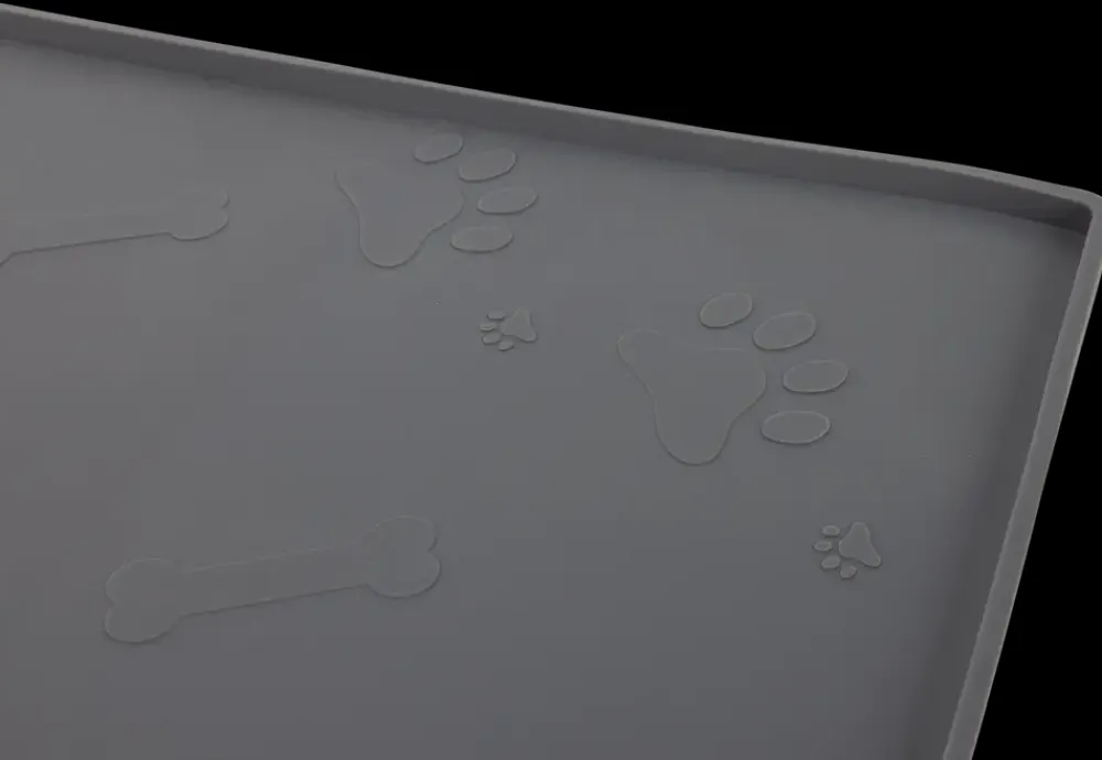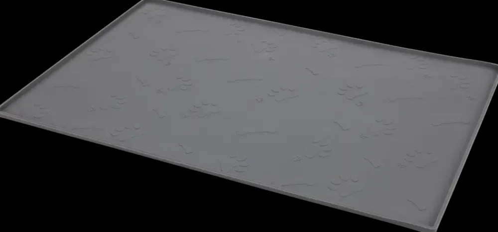 Dette foderunderlag i silikone er ideelt til at placere under dit kæledyrs mad- og vandskåle.Silikoneunderlaget forhindrer gris på gulvet samtidigt med at det skaber et stabilt og skridsikkert underlag for skålene.Underlaget har et fint pote- og kødbensdesign.
