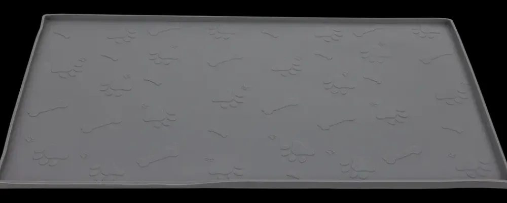 Dette foderunderlag i silikone er ideelt til at placere under dit kæledyrs mad- og vandskåle.Silikoneunderlaget hjælper med at undgå gris på gulvet samtidigt med at det skaber et stabilt og skridsikkert underlag for skålene.Underlaget har et fint pote- og kødbensdesign.