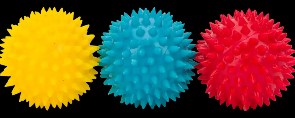 Ved brug af disse bolde kan du aktivere din hund på en sjov måde.Boldene er lavet i gummi og har en pibelyd og er derfor også et sjovt pivelegetøj/pibelegetøj.Piggene gør det sjovere for hunden at tygge på boldene.Boldene har en omkreds på 6,5 cm og vejer 30,5 g. pr. bold.
