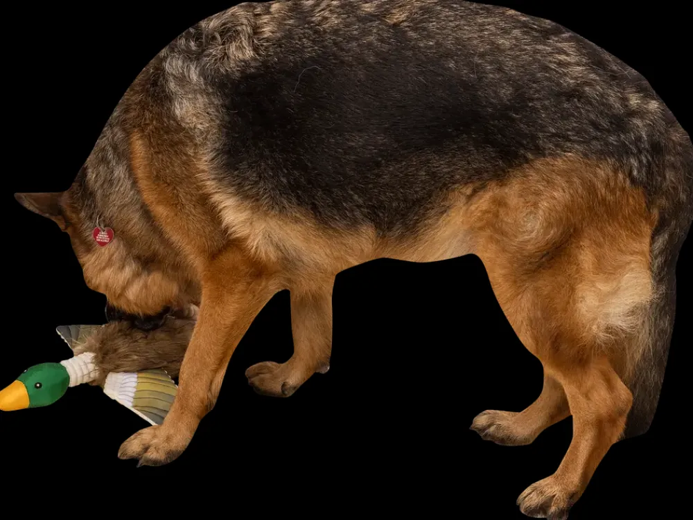 Sød bamse til hunden som ligner en and. Anden er lavet i blødt materiale, med reb som ben og med en indbygget pive- og knitrelyd for ekstra sjov.
