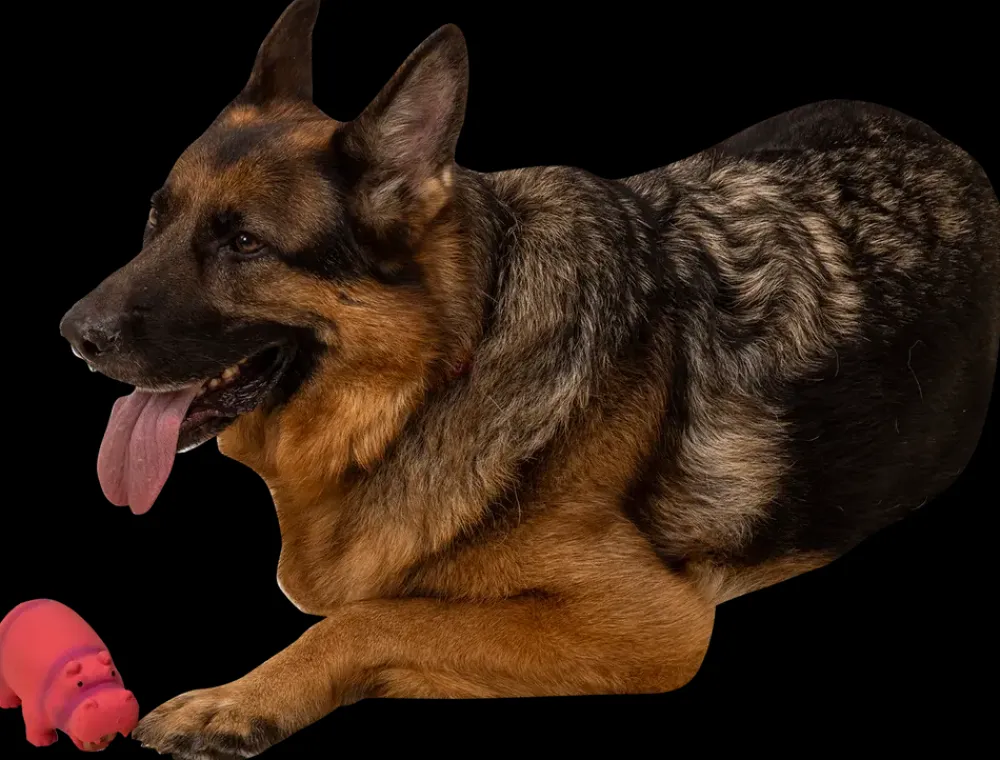 Sjov lyserød latexflodhest med naturtro lyd. Perfekt legetøj til din hund der elsker at lege.