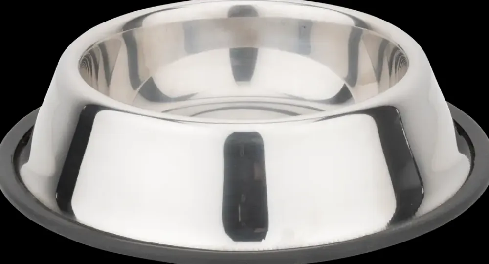 Klassisk hundeskål i stål med skridsikker silikonekant.Foderskålen kan også bruges til katte.