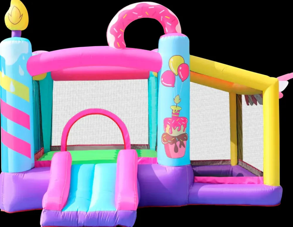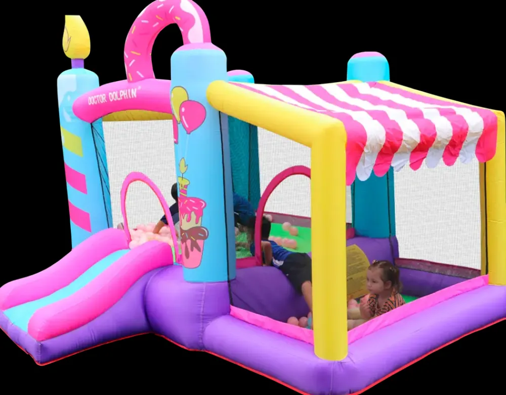 Oppustelig hoppeborg med rutsjebane og separat legeområde til udendørs brug. Modellen kombinerer hop, rutsjning og leg i én samlet løsning og er velegnet til børn i alderen 3–8 år. Konstruktionen giver flere aktiviteter i samme enhed.Hoppeborgen oppustes med den medfølgende blæser og er klar til brug på 1–2 minutter. Siderne er udført med net, som giver ventilation og overblik under leg. Indgangen er lav, og rutsjebanen har sider, der støtter en kontrolleret nedtur. Den overdækkede side giver ekstra legeområde med mulighed for forskellige aktiviteter.Materialet er PVC med forstærkede syninger, som understøtter gentagen brug. Leveres med opbevaringstaske, jordspyd og reparationssæt.Tekniske detaljer og mål:L. 290 x B. 270 x H. 220 cmMaks. belastning: 135 kgMaks. vægt pr. barn: 45 kgMaks. højde for børn: 150 cmAnbefalet alder: 3–8 årMateriale: PVCFarve: FlerfarvetBlæser: 350 W, 220–240 V, 50 Hz, IPX4Klar til brug: ca. 1–2 min