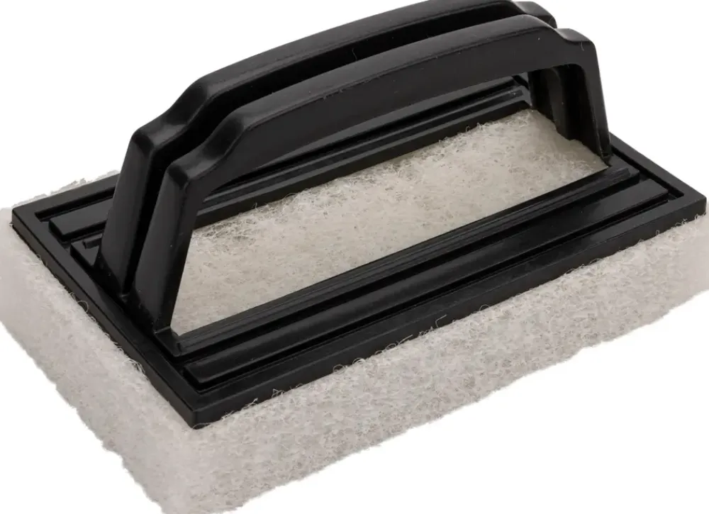 Droppen skuresvampen kan bruges til rengøring og oliering af møbler, gulve, døre, bordplader og andre overflader af træ. Kan også anvendes på metal, glasfiber, glatte og lakerede overflader.Skuresvampen har et håndtag, der sikrer et godt greb og gør det let at skure og rengøre overflader. Hvid svamp med sort håndtag.Test altid skuresvampen på et ikke synligt sted, da den kan give ridser på særligt sarte overflader. Skuresvampen tåler ikke petroleum- og terpentinholdige væsker.
