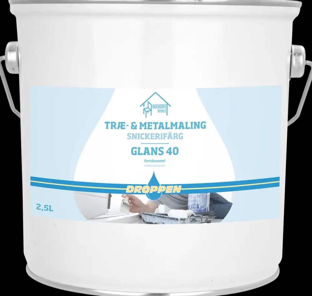 Droppen Træ- og metalmaling 2,5 L glans 40 – hvid| Træ- Og Metalmaling