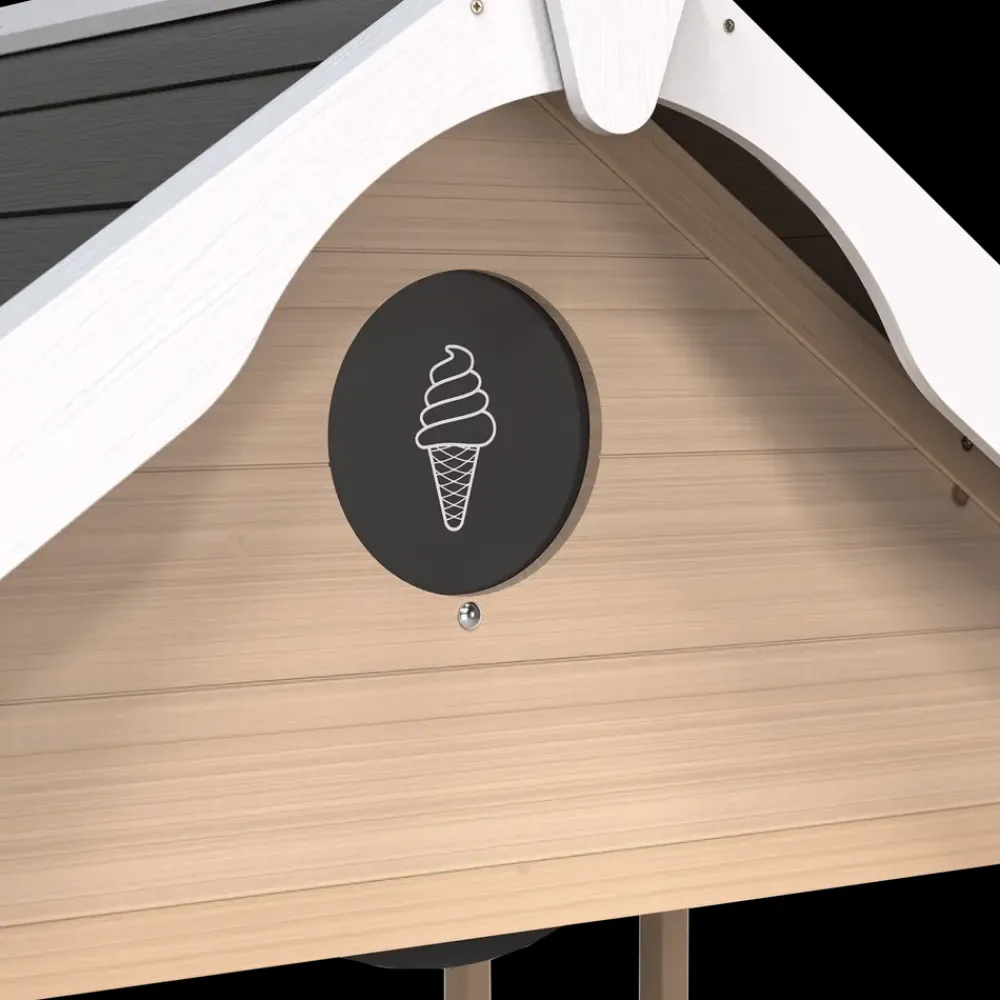 EXIT Hika er et sjovt og kompakt legehus, der inspirerer til fantasifuld leg. Forrest på huset sidder et unikt rollespilshjul med otte temaer, der giver børn mulighed for at forvandle legehuset til en isbod, et slot, en dyrlægepraksis eller en politistation. Med åbent design og god plads kan flere børn lege sammen.Legeredskab med uendelige mulighederHika legehuset giver børn frihed til at udfolde deres fantasi. Den rummelige disk kan bruges til leg som købmand, bager eller café, mens hylderne med tavlemaling gør det muligt at skrive tilbud eller beskeder. Den åbne struktur gør det nemt for forældre at holde øje med børnene, mens de leger.Legehuset er fremstillet i vejrbestandigt træ af høj kvalitet, som naturligt modstår både sol, regn og sne. Materialet kræver kun lidt vedligeholdelse og er skabt til at holde længe. Alle dele kan nemt udskiftes, så legehuset kan repareres og forblive en del af legen i mange år frem.SpecifikationerMål (L x B x H): 115 x 111 x 155 cmIndvendige mål: 89 x 140 cmMaks. belastning: 100 kgMateriale: Slidstærkt træAnbefalet alder: Fra 2 årLegehuset er en sjov og fantasifuld base, hvor børn kan lege, udforske og udvikle deres sociale færdigheder i trygge rammer.