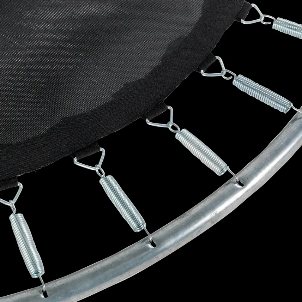 Inground trampolin i god kvalitet til nedgravning med kraftige fjedre, som giver god springstyrke.Trampolinens sikkerhedsnet er udstyret med kurvede stolper, så nettet er strammet.Silhouette-trampolinens kant har beskyttende polstring, der dækker fjedrene helt og er udstyret med et fodbeskyttelsessystem, så foden ikke kan ende mellem fjedrene.Trampolinens ramme er lavet af galvaniseret, pulverlakeret stål for at forhindre rust.Maksimal brugervægt: 120 kg.Fare for kvælning – produktet indeholder små dele, og er ikke egnet til børn under tre år.Produktet skal samles af en voksen.