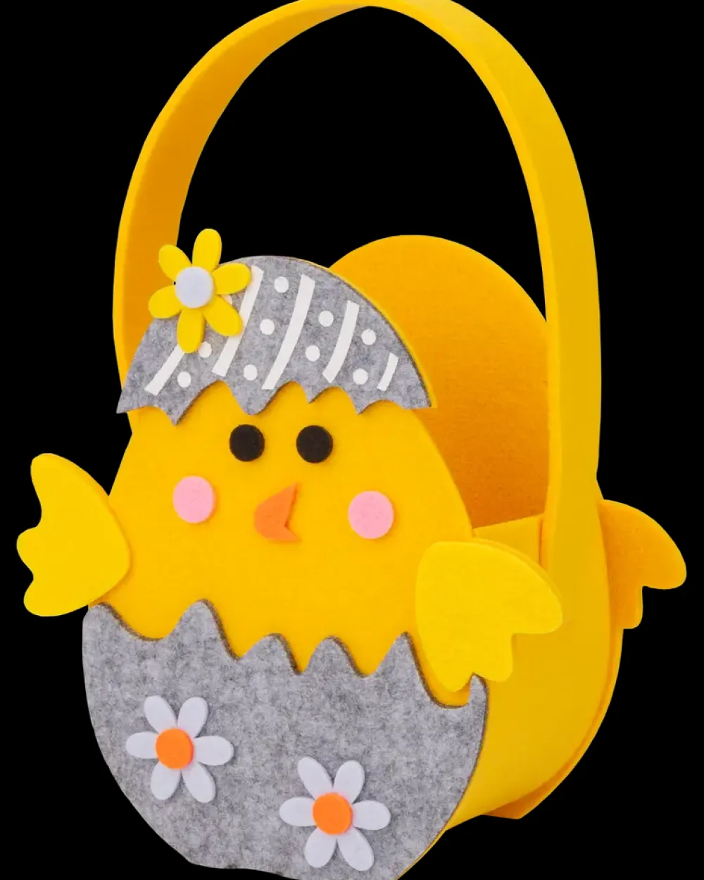 Filtkurv med påskemotiv, beregnet til opbevaring af indpakket slik i forbindelse med påske. Kurven leveres i assorterede designs formet som enten påskelam eller påskekylling og kan anvendes til påskeæggejagt, bordopdækning eller som dekorativ slikbeholder.Kurven er udført i filt og har et fast håndtag, der gør den nem at bære rundt. Størrelsen egner sig til mindre mængder slik og chokolade. Produktet må kun anvendes til indpakket slik.Variant kan ikke vælges ved køb i webshoppen.
