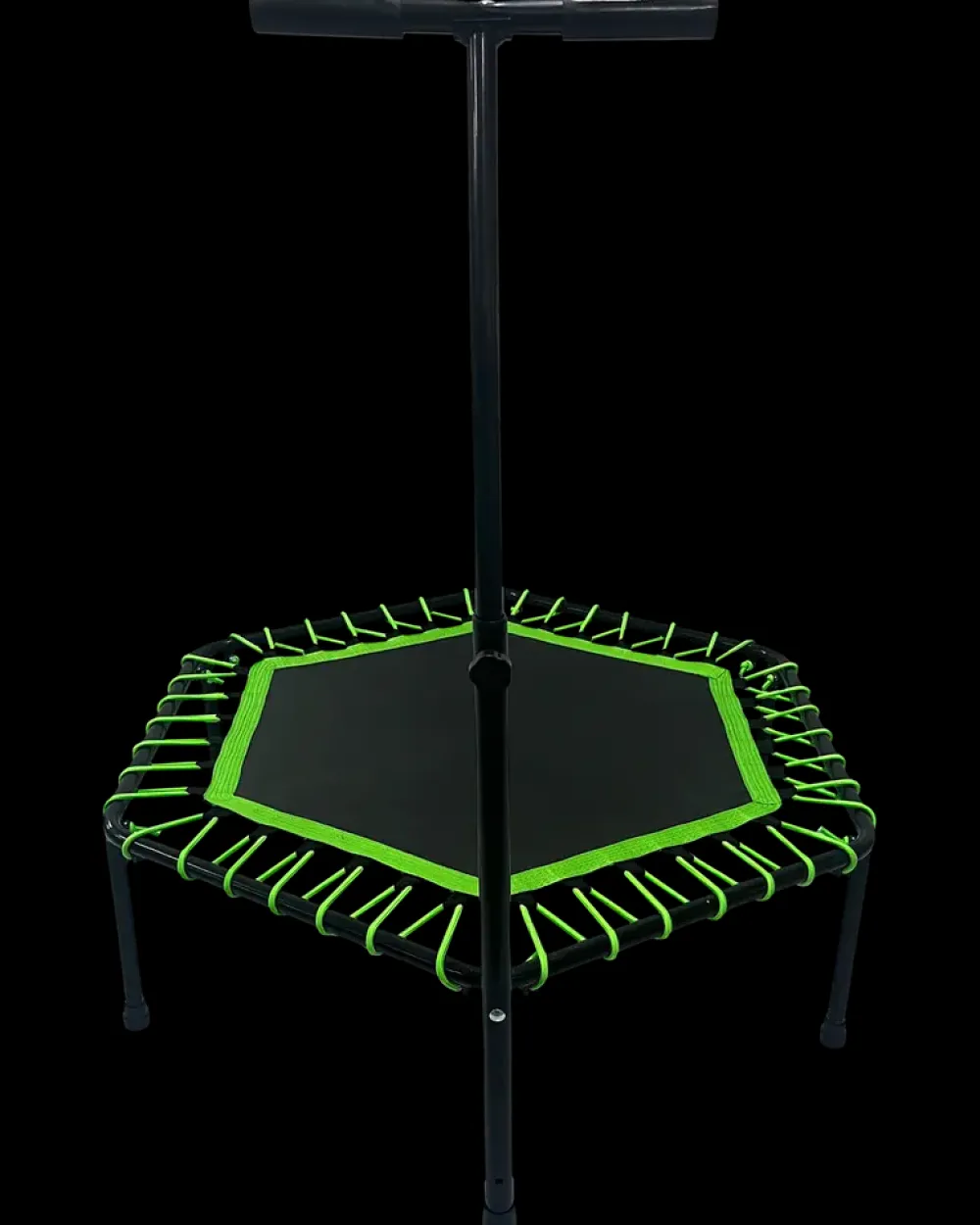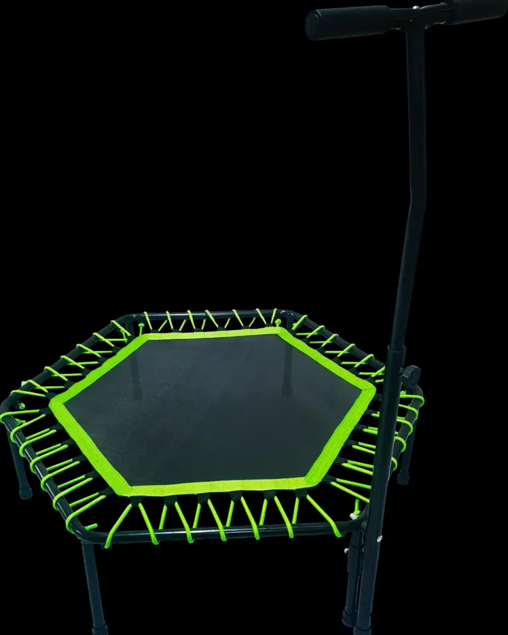 Denne fitnesstrampolin med justerbart håndtag er til både indendørs og udendørs brug. Med en diameter på Ø114 cm er trampolinen et fremragende valg til motion og træning. Den kan anvendes til at styrke balanceevnen, smidighed og kondition. Gelformede elastiksnore gør det nemt at fastgøre trampolindugen, og det T-formede håndtag giver ekstra stabilitet under træningen. Trampolinen er letvægt og transportabel, hvilket gør den nem at opbevare og flytte.Det er vigtigt at montere trampolinen korrekt og følge sikkerhedsanvisningerne for at sikre en optimal oplevelse. Maksimal belastning er 100 kg.Ikke egnet til børn under 3 år.